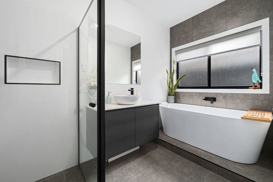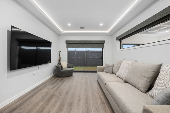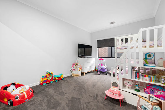 This wonderful home comprises of four bedrooms all with built in robes, feature master bedroom equipped with timber lined feature above your bed including, a great sized walk in robe and ensuite finished with deluxe builders upgrades such as floor to ceiling tiles, an inbuilt wall niche in the shower and upgraded matt black fixtures. While the main bathroom that services the remaining three bedrooms boasts similar upgrades with additional wall mounted bath.