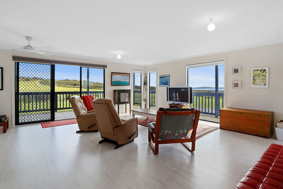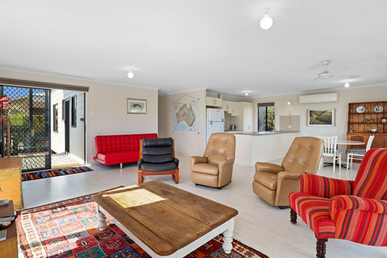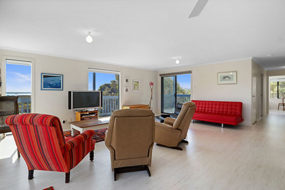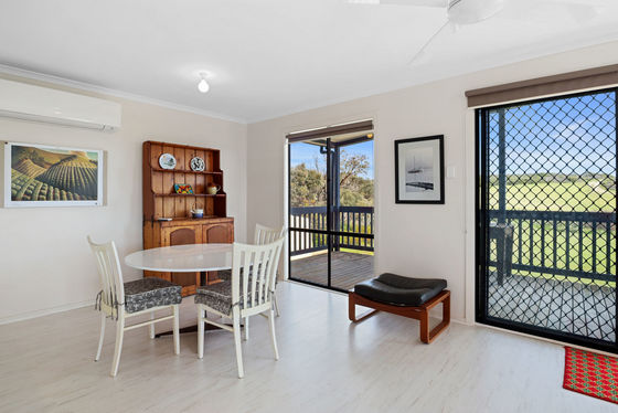 Accommodation is well-catered for with three spacious bedrooms, each fitted with ceiling fans, and a central bathroom. Sliding doors flow onto a wrap-around deck, perfect for entertaining or simply taking in the sweeping coastal views and the natural beauty of Dhilba Guuranda-Innes National Park. Practical inclusions add to the appeal, with two 22,000L rainwater tanks plumbed to the home and a 3x3m shed, with scope to extend for extra boat storage.