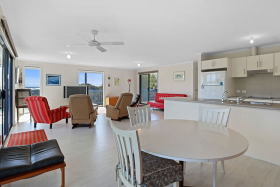 Tucked away at the end of a quiet court amongst other quality homes, this much-loved family holiday retreat offers a rare blend of comfort, space and coastal lifestyle. Set on a generous 824sqm (approx.) block with plenty of room for the boat, the home was built in 2010 by the current owners and has been lovingly maintained ever since. With 102sqm of living, the open plan design is light-filled and airy, featuring 2.7m ceilings, floating floors and neutral tones that enhance the sense of space. The modern kitchen includes a double sink, electric oven and cooktop, while the reverse cycle split system keeps the main living area comfortable year-round.