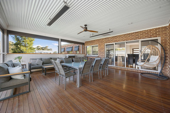 - Step outside and you'll find a fantastic undercover outdoor entertaining area, expanding over spotted gum decking. Perfect for gatherings year-round, overlooking the established backyard. Fitted with automatic blinds and bar heaters.
