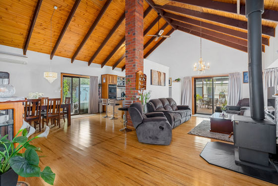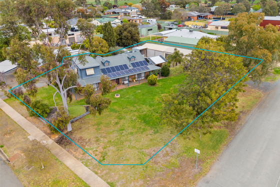This large family home is situated on a large 939m2 corner block with dual access. Theres 4 bedrooms, 2 upstairs have split systems, all 4 have BIRs and ceiling fans. 2 bathrooms, 1 up, 1 down plus a separate office or possible 5th bedroom. A spacious open plan living/ lounge/ dining with timber look floors, cathedral ceilings, wood heater and split system. The kitchen has solid timber cupboards, dual oven, induction cooktop and dishwasher. Cleverly designed storage room and linen cupboard under the stairs. Outside is the amazing undercover entertaining area, and 18.2mX6m lock up shed / workshop that will impress any car enthusiast or tradie. There's a 20 panel 5kw Solar system, security system, low maintenance lawns, gardens and easy access off either Bankin St or Queen St for the trailer, boat or caravan. Located 20 mins drive to Shepparton or 15 to Numurkah, only metres walk to general store/ post office and sporting ground. FAMILY LIVING AT ITS BEST!