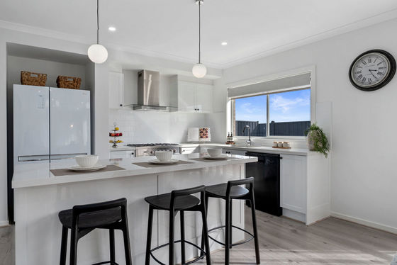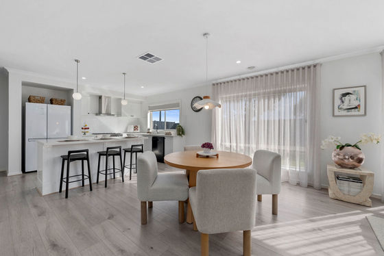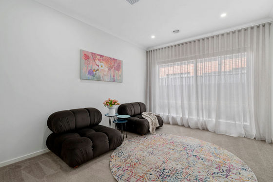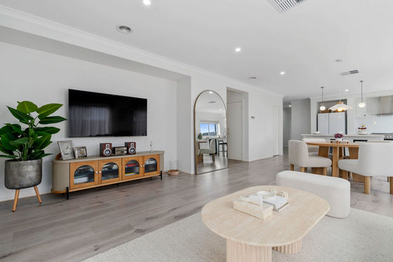 The formal lounge offers the perfect spot for movie nights or entertaining guests, while the open-plan kitchen, meals, and living zone serves as the true heart of the home. The gourmet kitchen boasts a range of premium inclusions: 40mm stone benchtops, vinyl wrap cabinetry, feature pendant lighting, 900mm stainless steel appliances, and a generous walk-in pantry. Overlooking the spacious family and dining areas, this space is designed for seamless everyday living and entertaining.