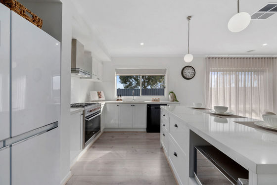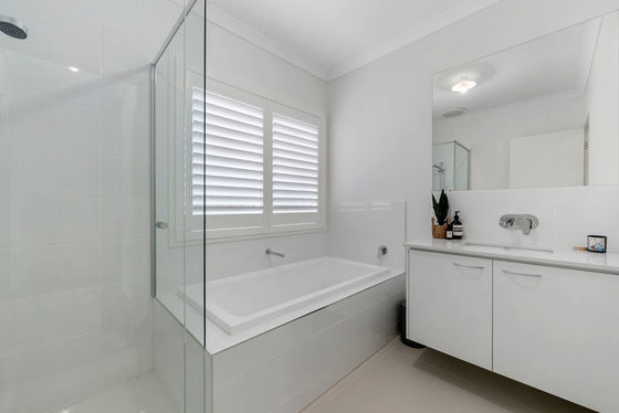Three additional oversized bedrooms each include built-in robes, and are serviced by a stylish main bathroom with stone benchtop, undermount sink, and plantation shutters.