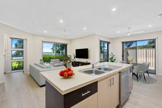 The kitchen is a true centerpiece " sophisticated and functional, with stone benchtops, premium appliances and sleek cabinetry that caters to both everyday living and effortless entertaining. The adjoining dining and living zones flow seamlessly to private outdoor areas, ideal for alfresco dining, morning coffee or sunset drinks overlooking the lake.