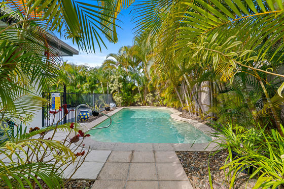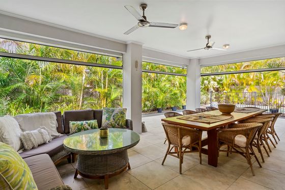 7 Nicklaus Lane sits on an easily maintained 727m2 block, featuring low maintenance gardens and a sparkling pool. With coveted side access that allows for a caravan or boat storage, you will be the envy of all! Seamless flow from the internal living to a fully screened rear terrace with views over the large sparkling inground pool and treed surround, this alfresco zone is the perfect entertainer. Resort style surrounds and cooling breezes throughout make this one not only a comfortable family home, but a sensational year round entertainer.