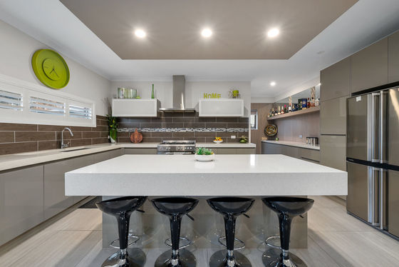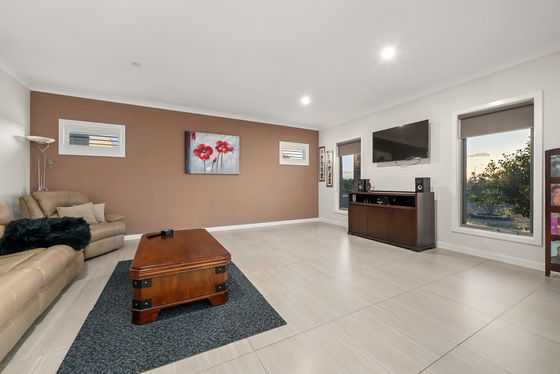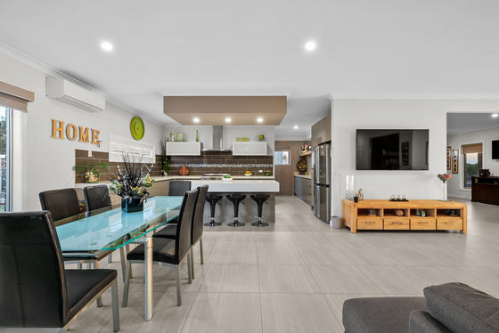 Entering the home you are met with a large open space, to the right sits the formal lounge room, with plenty of space on offer for the whole family to utilise, while this leads you into the massive open plan living and dining area. With an abundant of space on offer this area creates an ideal spot for entertaining family, friends and guests, the Conara is perfect for winter nights, while the split system provides complete climate control year-round. This is overseen by the absolutely stunning kitchen, with feature upgrades all the way throughout including huge slab of stone covering your island bench while the remaining benches varies between 40mm and 60mm, 900mm appliances, ample bench space and cabinetry, drop ceiling. This is further enhanced by the huge walk-in pantry leading you into another space with heaps of bench space and more cabinetry.