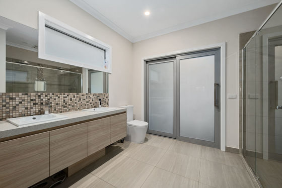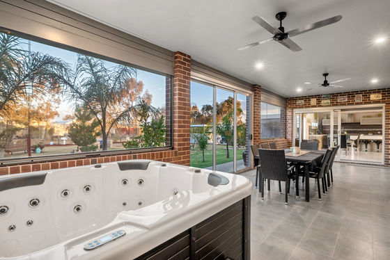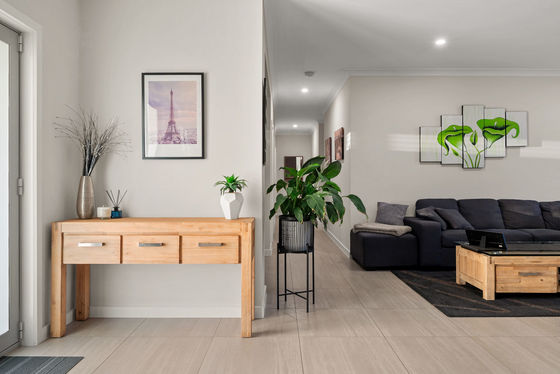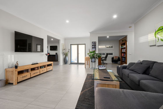 As soon as you walk onto this property you will be immediately impressed, a huge driveway creates a perfect space for extra car accommodation or to hold trailers caravans and more. The landscaped front yard boasts feature ornaments and plenty of shrubbery and native flora throughout the entirety of the yard. The front façade sets the modern and sleek tone you can expect throughout, with tinted windows allowing privacy and an aluminium framed double front door leads you into the home.