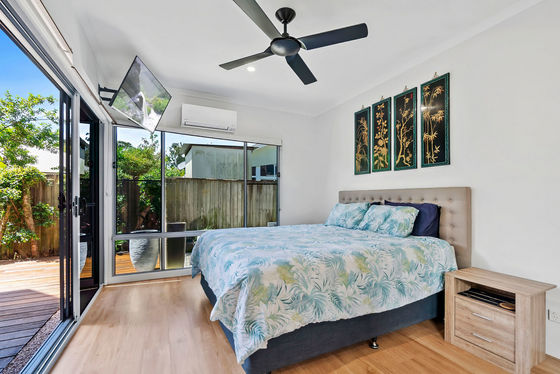 - Bedroom 3: Built-ins, alfresco access, views over the yard & pool
