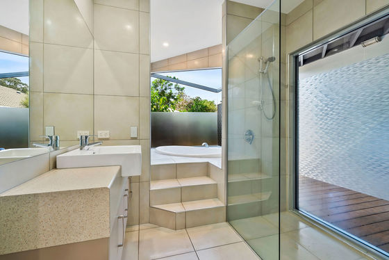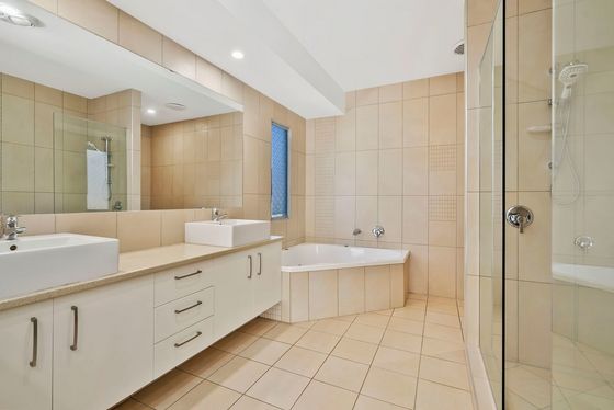 - Spa bath, double shower, twin vanities
