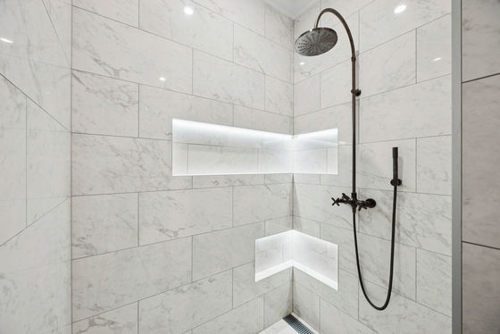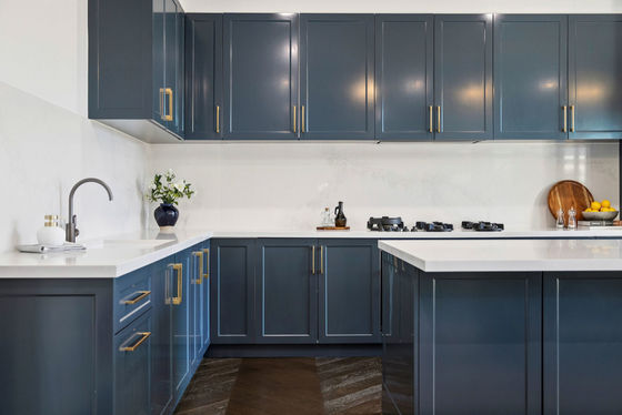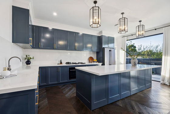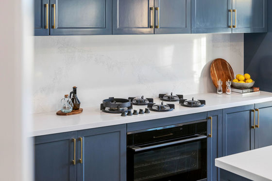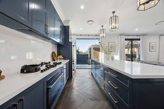 * Calcutta quartz benchtop, Pitt gas cooktop & 900mm Electrolux oven