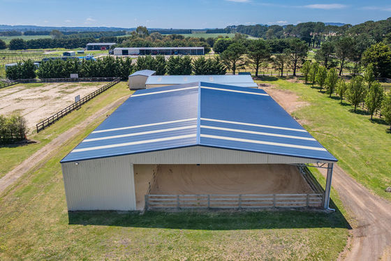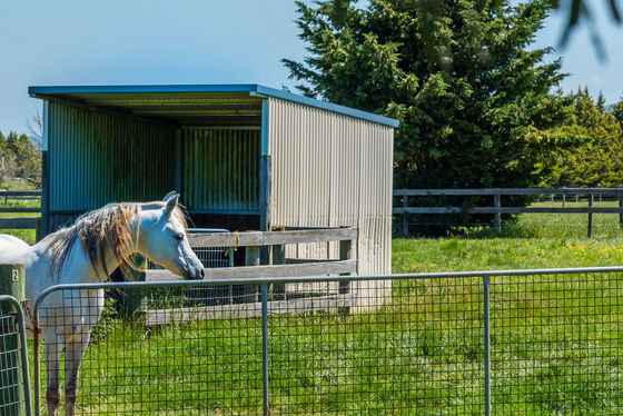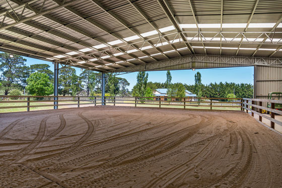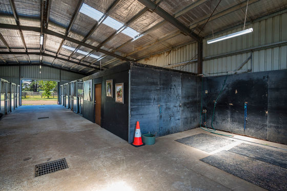 • Large shed (36 x 24m) which includes indoor display/work sand arena, concreted space designed to accommodate a further 8 stables, office, kitchen, and bathroom