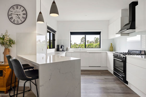 Inside, the quality and space of this home is immediately evident. Boasting four generous bedrooms plus a dedicated office with built-in cabinetry and three living areas, there's room for everyone. The stunning kitchen is a true showpiece, complete with a 900mm Smeg oven, stone benchtops, and a Miele dishwasher. Modern finishes including square-set ceilings, double blinds, and stylish fixtures throughout add to the home's sense of sophistication.