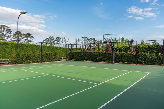 • Championship sized Tennis court (3 years old) with lighting and basketball hoops, plus sports storage shed.