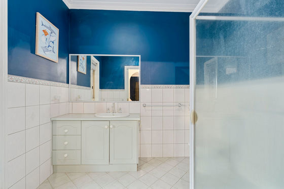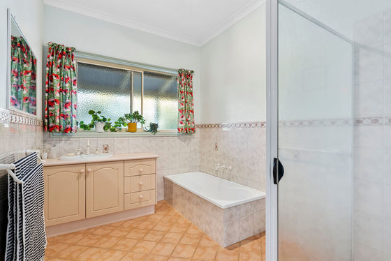 The main bedroom features a walk-in robe, ensuite, and TV and phone connection points. The remaining bedrooms are fitted with built-in robes and ceiling fans, ensuring year-round comfort. Climate control is comprehensive, with ducted evaporative cooling, a split-system unit, the Coonara heater, and an additional gas heater.