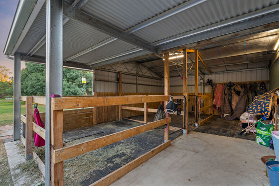 Equipped with premium horse facilities, this property is a standout for any equestrian enthusiast. Three professionally fenced paddocks, featuring a combination of Woodshield and Stockguard fencing, provide safe and secure spaces for your horses. Two 6 x 3 metre Colorbond shelters offer excellent all-weather protection, while two full-size stables connect seamlessly to a fully appointed tack room and a hot/cold wash bay. Completing the setup is a spacious 62 x 28m Olympic sand arena, perfect for schooling, training, or enjoying a variety of riding disciplines.
