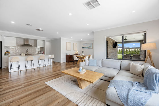 Open-plan family, dining, and kitchen zone filled with natural light