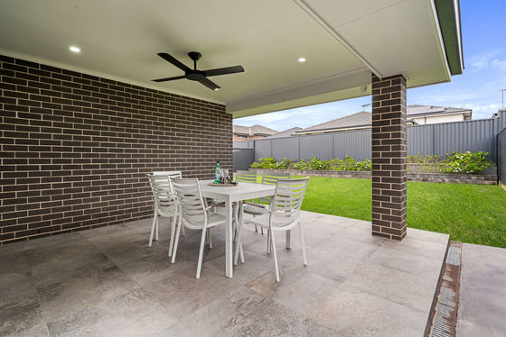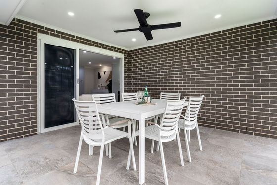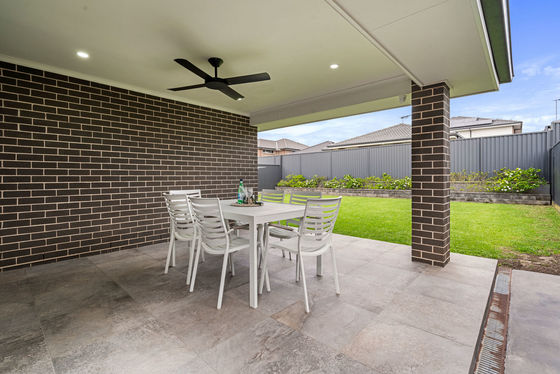 - Paved alfresco area with ceiling fan for entertaining overlooking large level backyard with manicured lawns & gardens sitting on a 456m2 block