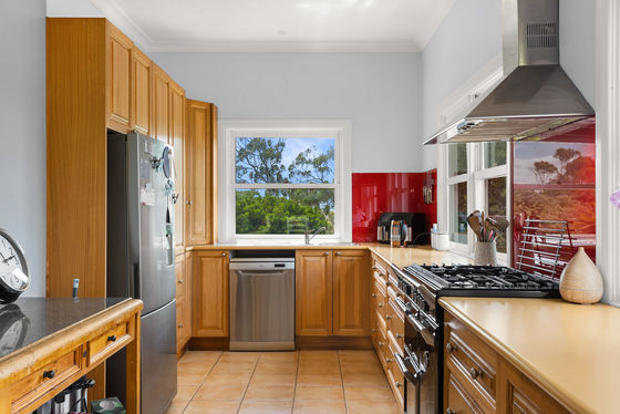 The country kitchen is full of character and features an AGA stove, timber cabinetry and lovely outlooks to the established garden. Accommodation includes four bedrooms plus a separate study, along with a central bathroom featuring a skylight, a generous laundry and a separate toilet.