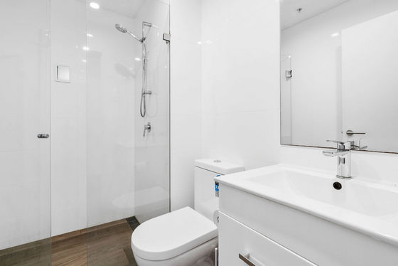 * Generous bedroom plus bathroom with sleek, white - tiled finishes