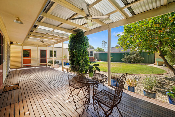 - Charming 3 bedroom weatherboard Californian bungalow - Positioned in a quiet & tightly held central pocket of Wangaratta - close to the CBD & shopping - Oozing period charm including high ceilings & polished Murray Pine floorboards - 3 king sized bedrooms all featuring built in robes & ceiling fans - Updated kitchen with cork floor, dishwasher, electric wall oven & gas cooktop - Large dining room adjacent to the kitchen with feature gas log fire, ceiling fan & polished floorboards - Generously sized North facing living space with split system air conditioner, ceiling fan & French doors leading out to the decked undercover entertaining area that spans the rear of the home - Tiled bathroom with double vanity, toilet & shower over bath - Keep cool over the warmer months with ducted evap. cooling - Stunning entertaining room with pizza oven, ceiling fan, vaulted ceiling & French doors - Bungalow with split system & built in robes - perfect as a guest bedroom or a home office - Other features include; 4.8kW solar system to help reduce electricity bills, single carport & single lock up garage, garden shed, second toilet, euro laundry - All set on a 600m2 approx allotment with secure rear yard
