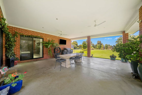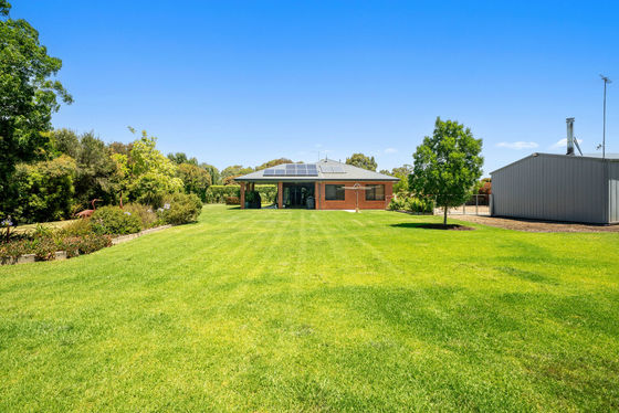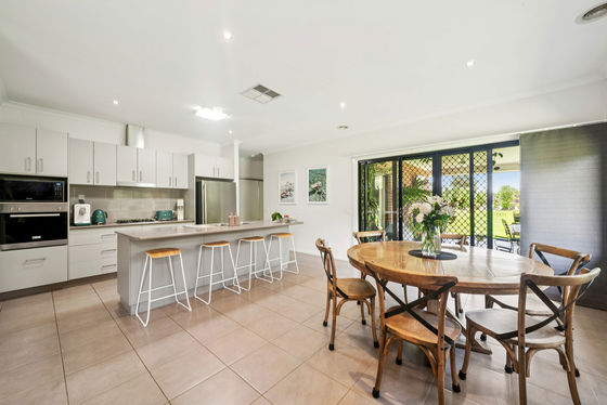 - Modern living at its best with this 4 bedroom brick veneer home set on a family friendly 4000m2 block - Upon entry you are greeted by 9ft ceilings, instantly establishing an expansive and airy atmosphere to the home - Multiple living zones is a real feature with a formal lounge/theatre room, kids breakaway space as well as the open plan kitchen/living/meals area - Master bedroom complete with ceiling fan, walk in robe & full ensuite with double vanity - Kitchen with island bench, dishwasher, large walk in pantry, gas cooktop, electric oven & ample storage - BRs 2, 3 & 4 are all generously sized with all boasting ceiling fans & built in robes - Cleverly designed family bathroom with separate bath & shower with an adjacent powder room - Massive undercover alfresco entertaining area flows directly from the dining space & features ceiling fans & downlights that overlooks the manicured established landscaped gardens & lush lawns - Reliable 30m deep bore that has everything looking green year round - 9m x 7.5m approx shed with 2 x roller doors, PA door, wood heater, power & concrete floor as well as the double remote lock up garage with direct entry to the home - All the conveniences of living in town with the space for the family to grow & play whilst being conveniently located close to P-12 Cathedral College