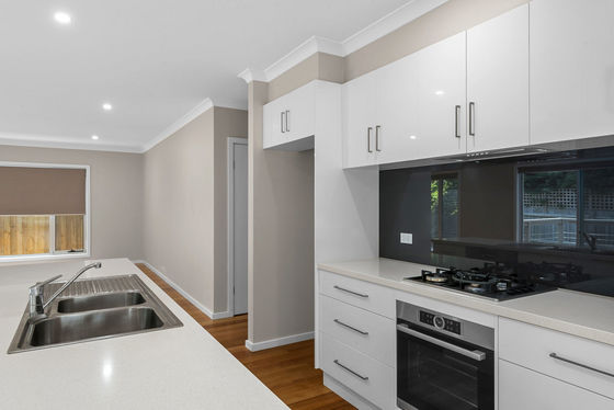 Inside, the home unfolds into light filled spaces enhanced by large windows that invite natural light from every angle. Warm hardwood floorboards run throughout the main living areas, adding a natural elegance. The thoughtful layout offers excellent separation between living zones and accommodation, making the home perfectly suited for families, downsizers, or anyone seeking a peaceful retreat. Reverse cycle ducted heating and cooling and double-glazed windows provide year-round comfort.