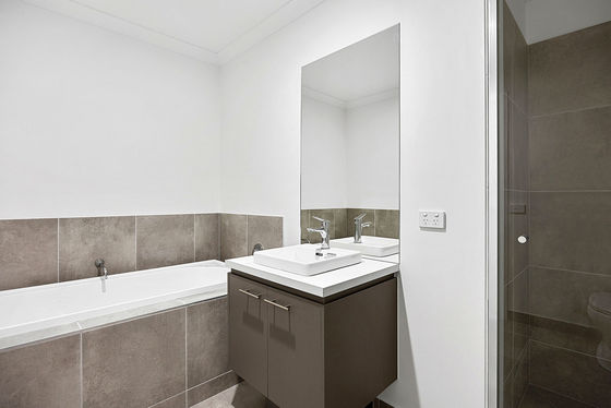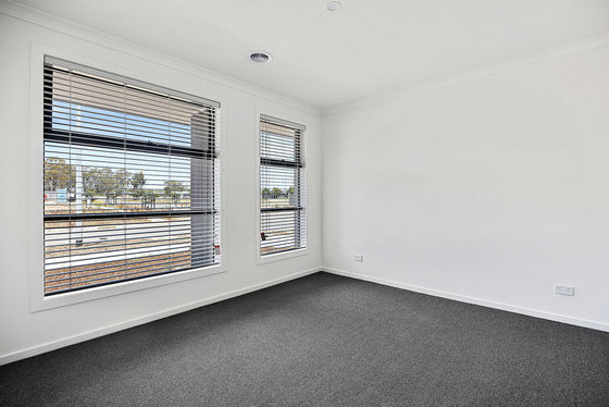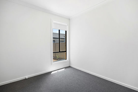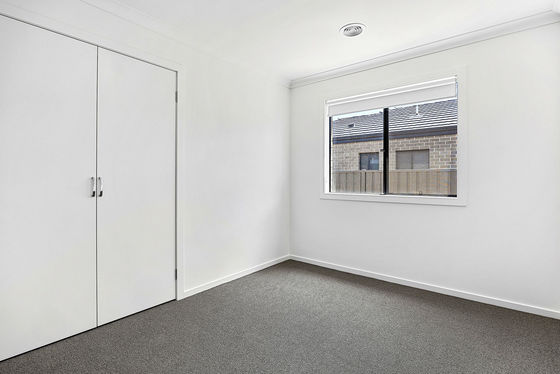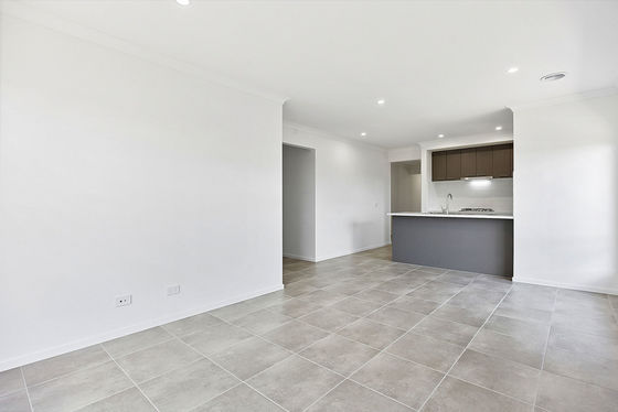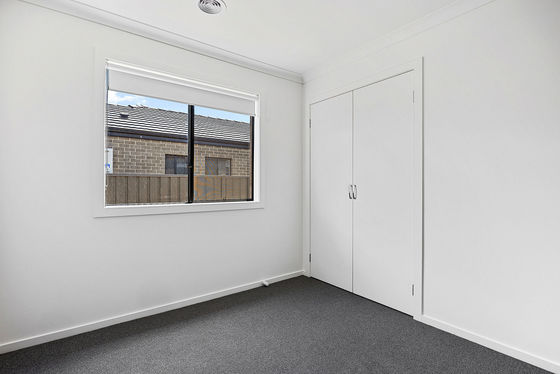 This newly constructed four-bedroom home provides a functional floorplan with an open-plan kitchen, dining and living area positioned at the centre of the property. The kitchen includes storage cabinetry and preparation space, with the living zone serviced by a split-system unit for cooling. Central heating is installed throughout.