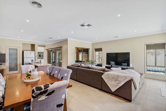 This impressive four-bedroom home has been thoughtfully designed to cater to refined family living, offering two expansive living zones that provide flexibility for both formal entertaining and relaxed everyday enjoyment. High-quality finishes and a well-considered layout create an atmosphere of comfort and elegance throughout, while ducted heating and evaporative cooling ensure year-round climate control with ease.