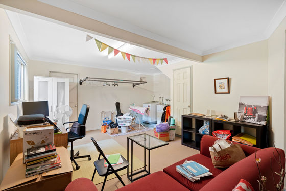 - One garage currently converted and utilised as a spacious and private home office/second living area. Can be swiftly reverted back with little effort.