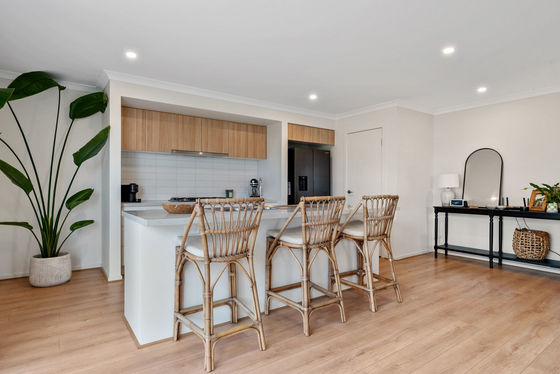 The heart of the home is the open kitchen, living and dining area, with a big island bench for everyday meals, homework, or catching up with friends. Sliding doors open to the yard, making it easy to enjoy weekends at home, whether it is a barbecue, a trampoline, or space for pets.