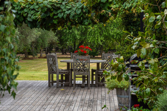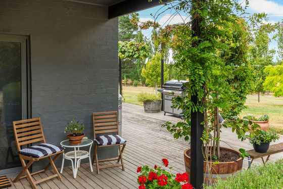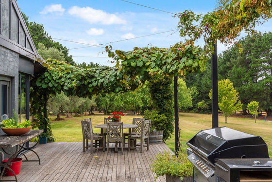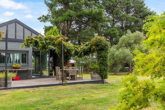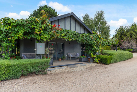 Accommodation is equally compelling, with a beautifully renovated two-bedroom cottage that has been thoughtfully and tastefully brought back to life. The home features a stunning new kitchen with island bench, solid marble benchtops and splashbacks, and quality Smeg appliances, along with a new bathroom and updated carpets, tiles, and paint throughout. Multiple split systems ensure year-round comfort, while the surrounding grounds create a truly tranquil and restorative setting. Ornamental grapevines, manicured hedges, poplars, mature silver birch trees, hydrangeas, and native shrubs frame the residence, while an established orchard offers olives, quince, cherry, apple, plum, apricot, nectarine, boysenberry, and fig trees.