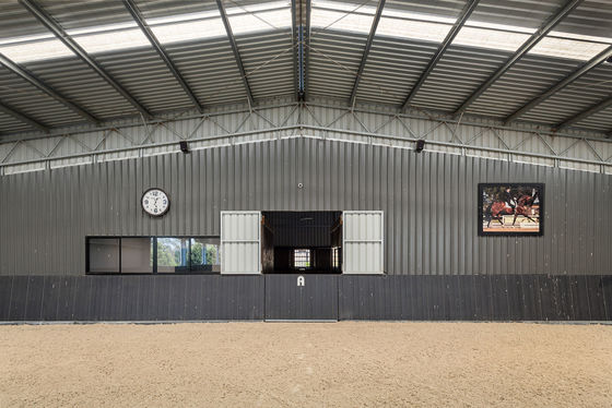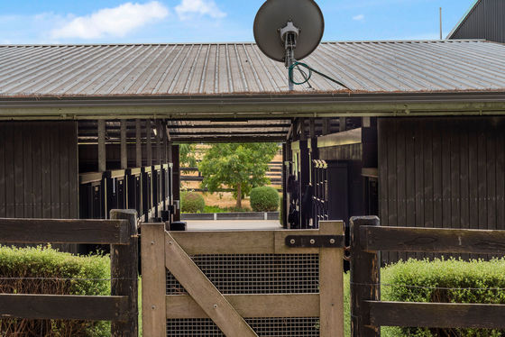 At the centre of the property is an outstanding 20 x 60 metre covered arena, enclosed on three sides and featuring a cutting-edge ebb and flow system with integrated, automated underground watering and drainage. This advanced technology maintains consistent, optimal moisture from below, eliminating the need for overhead watering. Finished with a premium Capricorn surface, the arena provides exceptional stability, cushioning, and secure footing"ideal for advanced dressage movements or jumping. A glassed viewing area with an adjoining kitchen completes the space, creating a refined, distinctly European atmosphere.