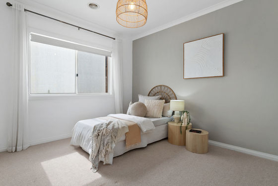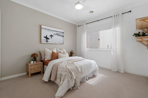 Accommodation is generous and well zoned. The master bedroom is impressively sized and positioned for privacy, complete with a walk-in robe, ensuite, ceiling fan and soft wool carpets. The remaining bedrooms are all oversized and include built-in robes, serviced by a central bathroom and separate WC, ensuring comfort and convenience for the entire household. Sheer and blockout blinds throughout add both style and practicality.