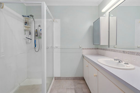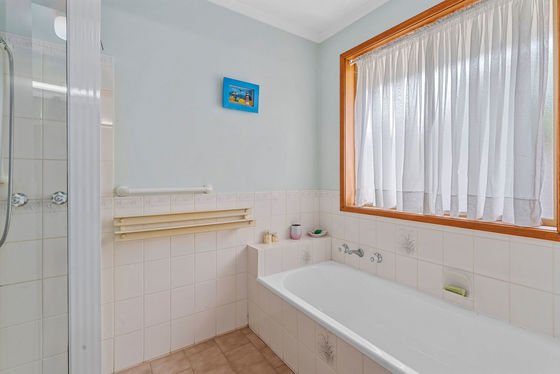 The home's accommodation is cleverly zoned for privacy. The spacious master suite features a large robe and private ensuite, while a separate bedroom wing includes two additional generously sized bedrooms with built-in robes. These are serviced by a family bathroom with bath and shower, complemented by a separate powder room, ideal for family living and guests.