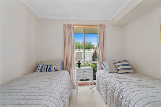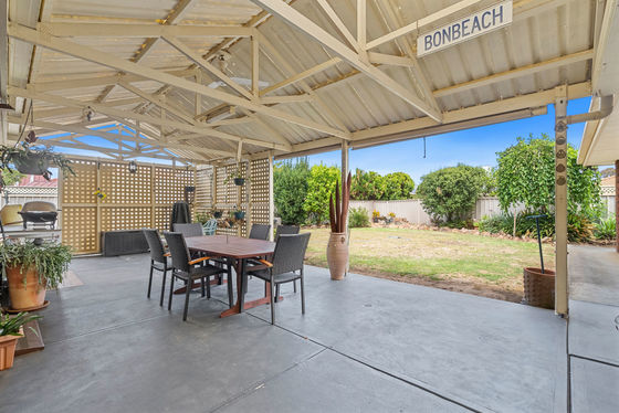 Sliding doors extend the living space outdoors to a large covered alfresco entertaining area, ideal for year-round enjoyment. Overlooking easy-care gardens and lawn, the outdoor area is private and complete with a garden shed and water tank for irrigation, adding convenience and sustainability.