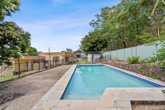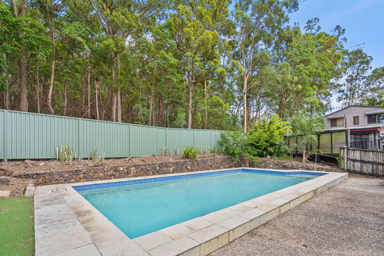 - Large swimming pool with bushland backdrop