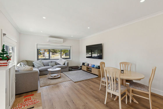 The home is a lovingly restored and fully renovated three-bedroom, two-bathroom character residence, where timeless charm meets modern comfort. A spacious living area with split-system heating and cooling provides year-round comfort, while the brand-new kitchen and dining area form the heart of the home.