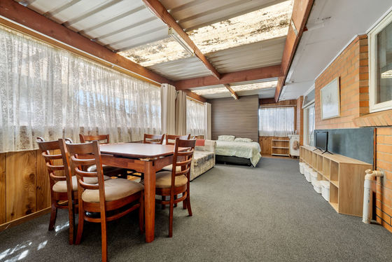 The timber kitchen offers warmth and functionality with laminate benchtops, a 600mm upright stove and cooktop, dishwasher, and an adjoining dining area, while a versatile sunroom provides additional living space ideal for a second lounge, home office, or playroom.