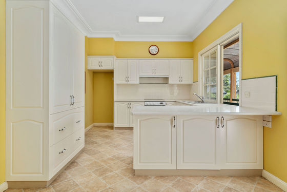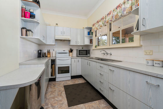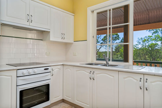 * Kitchen with electric cooking, tiled splash back and an abundance of bench and cupboard space