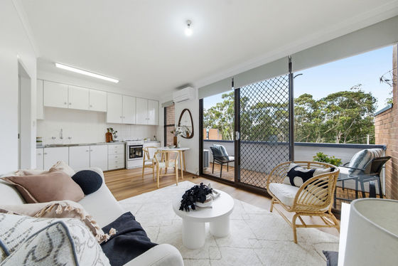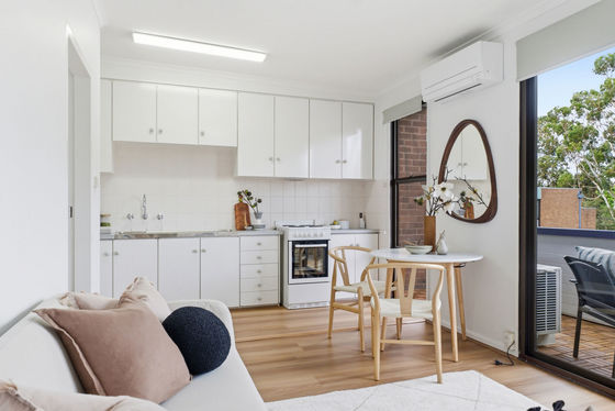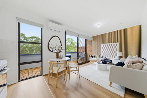 The light-filled apartment features timber hybrid floors, an original functional kitchen, and an open-plan living area with a timber feature wall that's ready to enjoy from day one. The living room features full-length glazing that opens onto a generous balcony perfect for lazy evenings chill out or early morning coffee. The living space also features a split system air conditioner for comfort all year around.
