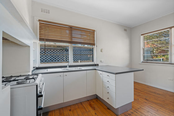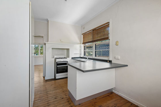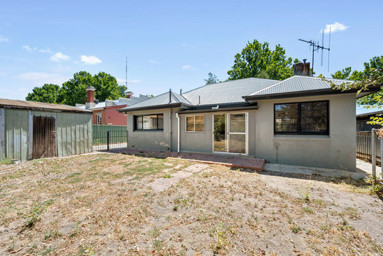 Seeking a first home, investment or even a great location for a home-based business? This new listing in need of works inside and out may just be the conduit to all three. Sitting proud behind twin silver birch trees, at the end of a concrete path, this rendered solid brick period home with updated colorbond roof and gutters over the years presents a blank canvas to fit your needs. Open the front door to a wide entrance foyer, high ceilings and golden timber floorboards. Double French doors lead to the large front lounge, with dual picture windows and a gas heater set into the original hearth. A sliding door separates the space from the kitchen/meals area. Add in three bedrooms and a three-piece bathroom, and you've ticked off all the essentials to value-add to as needed.