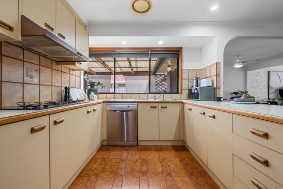 The well-appointed kitchen offers ample bench space, generous cabinetry, a dishwasher and easy access to the large laundry for added convenience.