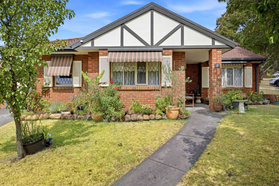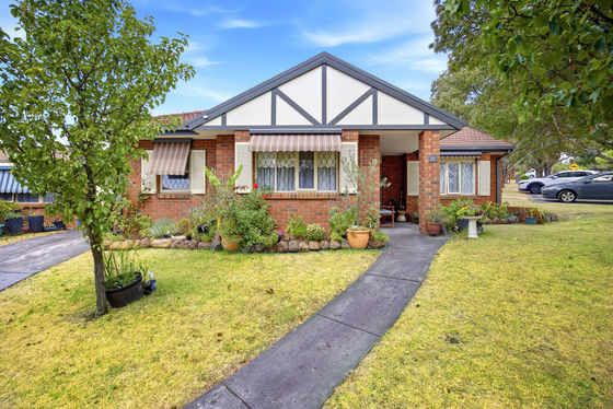 This beautiful home sits proudly on a corner allotment that just radiates charm. The home offers an appealing frontage with leadlight windows, a peaked Tudor roofline and a generous grassed front courtyard.