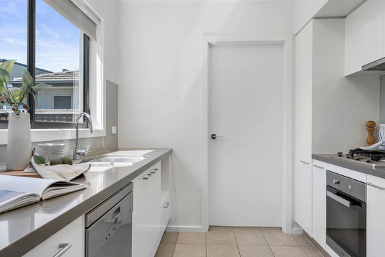 The heart of this home is the modern kitchen featuring sleek waterfall stone benchtops, gas cooking, and high-quality stainless-steel appliances. Flow seamlessly into the bright, open-plan living areas, fully tiled for ease of maintenance and elegantly presented. Each of the spacious bedrooms boasts built-in wardrobes, with the master enjoying the luxury of an ensuite and double robes.
