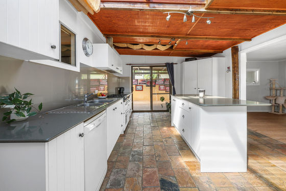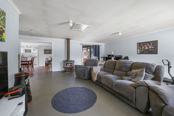 Inside, you'll find a massive formal lounge featuring painted concrete floors and a combustion heater. This flows through to the formal dining room and into the updated kitchen, complete with a large island bench, Belina oven, exposed beams, slate flooring, and even a beautifully stained and polished tree trunk feature. A small casual dining area compliments the space.