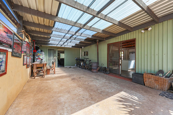 The kitchen provides direct access to the undercover outdoor area, which could also serve as a carport. Complete with a potbelly heater this space is an ideal setting for year-round entertaining.