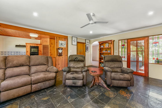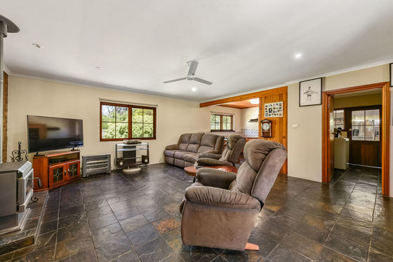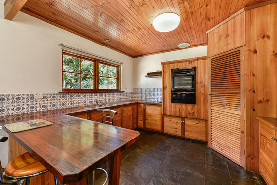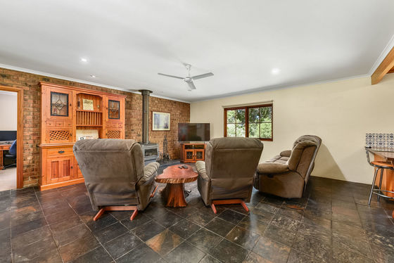 A second kitchen and family area provides additional flexibility, complete with timber cabinetry, pantry cupboard, and slate flooring, wood slow combustion heating - perfect for extended family living or entertaining on a larger scale.