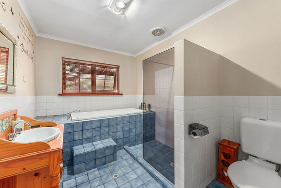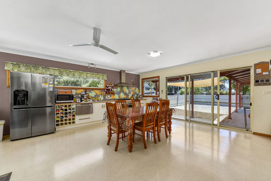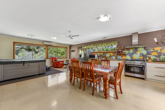 At the heart of the home is a spacious entertaining room featuring modern white kitchen cabinetry, dishwasher, and a 900mm electric oven with 6-burner gas cooktop. Cork tiled flooring adds warmth and character, while a luxurious six-person spa and reverse cycle split system ensure year-round comfort - an ideal setting for entertaining family and friends.