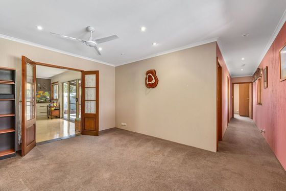 The formal lounge offers a quiet retreat with carpet flooring and double doors opening into the entertaining area, creating seamless flow for when entertaining.