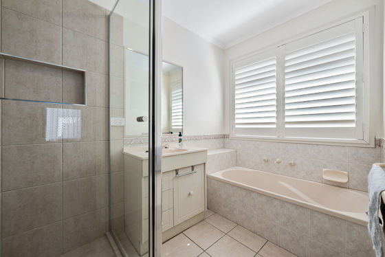 Comprising three generous bedrooms, the master features its own private ensuite while the remaining bedrooms are serviced by a central bathroom, thoughtfully designed for family functionality. The home is kept comfortable year-round with ducted heating and evaporative cooling throughout.